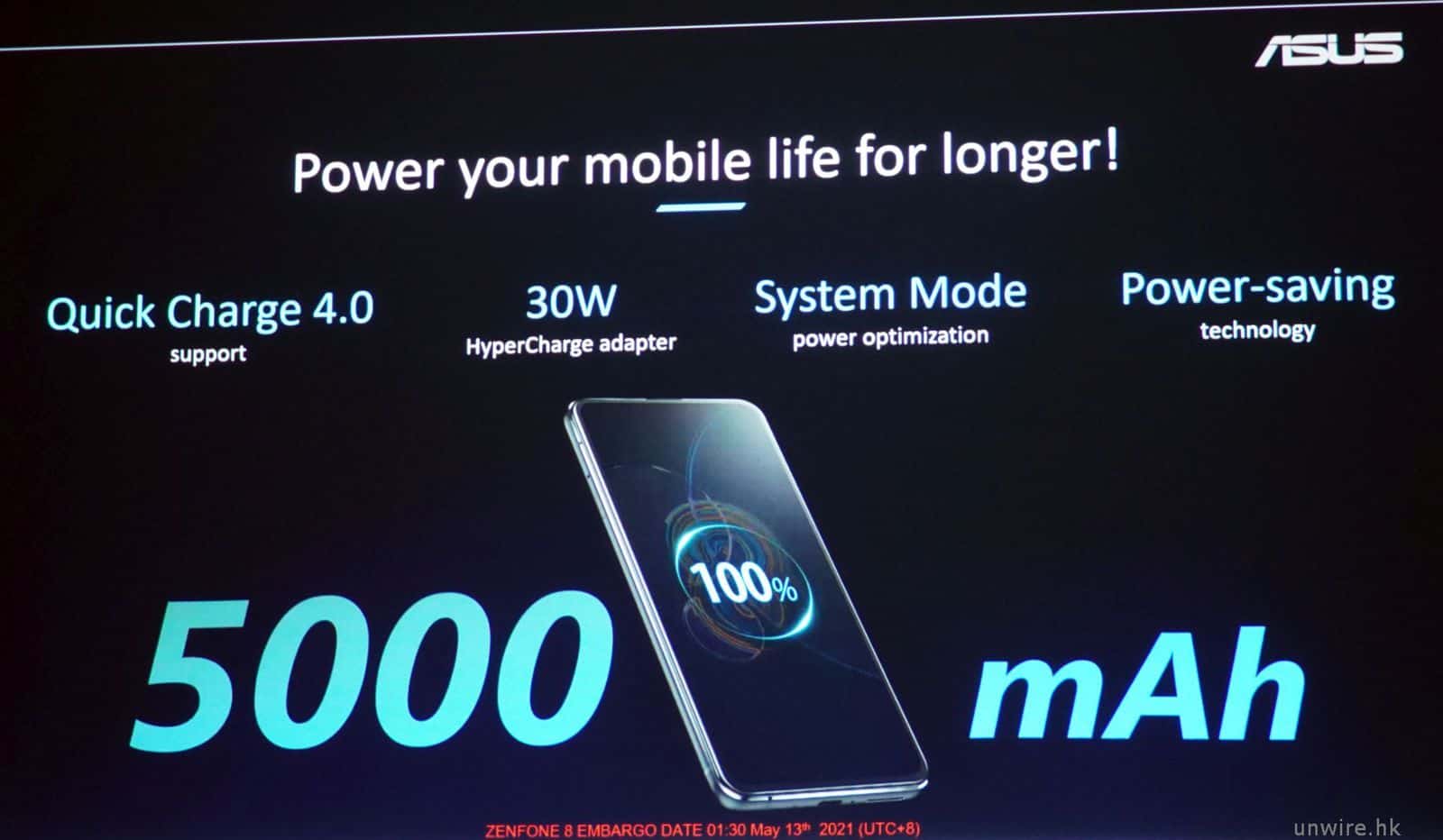 ▲ZenFone 8 內建了 4,000mAh 容量電池,而 ZenFone 8 Flip 電池容量更高達 5,000mAh,加上速差功能,足夠一日使用有餘。