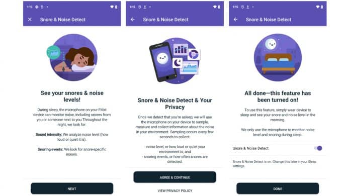 網站 9to5google 拆解了 Fitbit 手機程式的最新版本,發現當中出現「鼻鼾與噪音偵測」,當用戶選擇啟動功能,手錶的咪高峰會在用戶入睡後自動開啟,記錄用戶打鼻鼾的數據。不過 9to5google 指出,由於 Fitbit 無法分辨鼻鼾聲是由用戶,還是枕邊人發出,所以如果另一半亦有打鼻鼾的情況,鼻鼾聲亦會同樣被記錄。