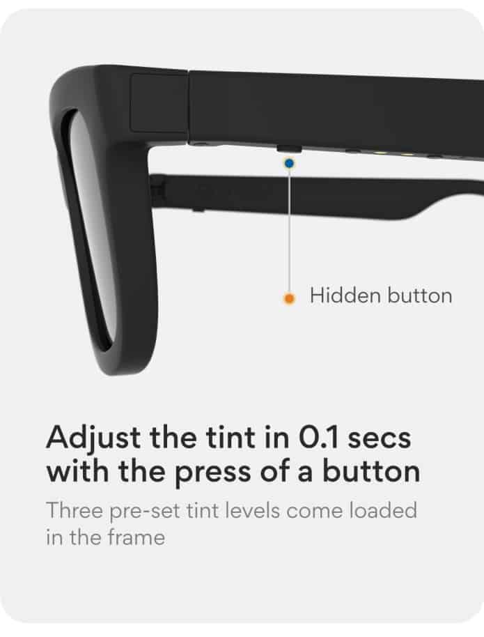 開發的初創 Ampere 提供基本和高級兩個版本,前者是一個單純可以自行調節色調的太陽眼鏡,後者則加入了藍牙免提功能,內置了揚聲器和咪高峰,可以用於聽歌、通話或召喚手機智能助理。雖然揚聲器採用了開放式設計,但 Ampere 表示只有用戶本人才可以清楚聽到聲音。