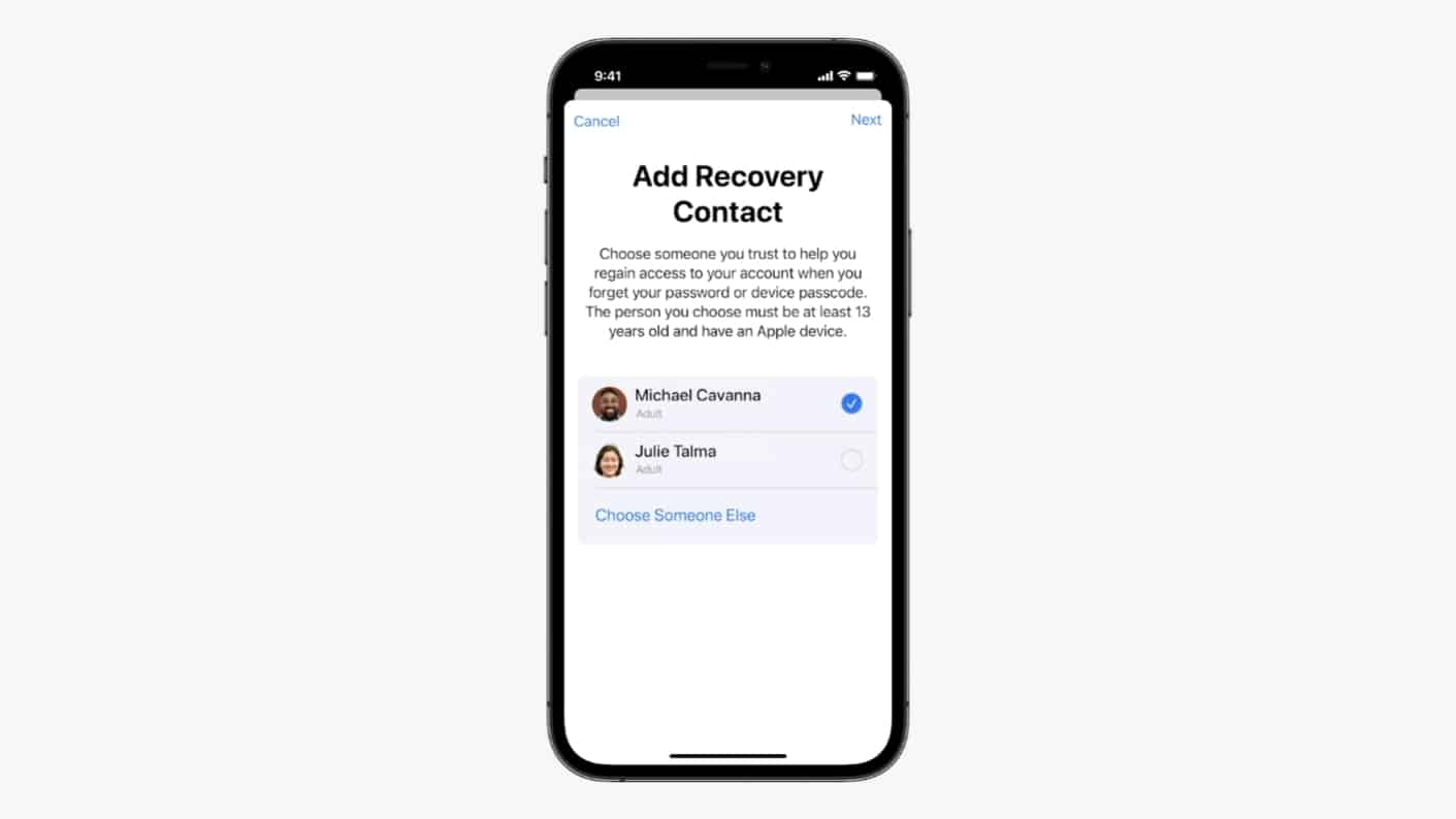 此外,iCloud 亦支援全新復原功能,用家萬一忘記登入資料,可透過預先登記的聯絡人接收驗證碼,令你可以找回登入資料。