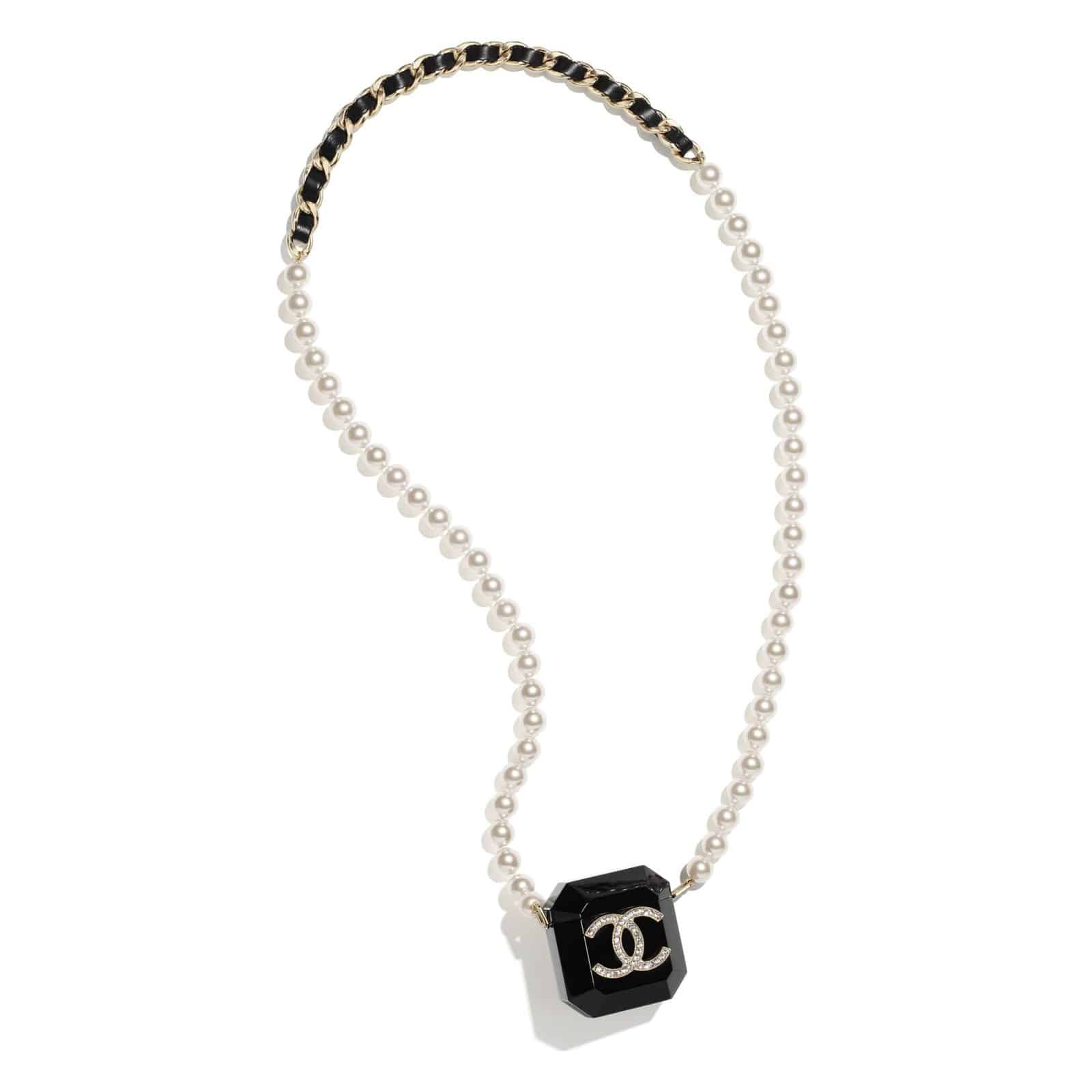 官方產品名稱為 Chanel Airpod / AirPods Pro 套項鏈,保護殼採用高級樹脂物料製成,搭配 Chanel 手袋常見的金屬鏈和小羊皮帶,還有狀似珍珠的琉璃珠鏈組成,而保護盒面有一個鑲有水鑽的閃亮 Chanel 標誌。無論是 AirPods 還是 AirPods Pro 的版本,這個保護套項鏈的官方建議售價同樣為 HK$20,600,不甘於平凡的 AirPods 用戶可以考慮。