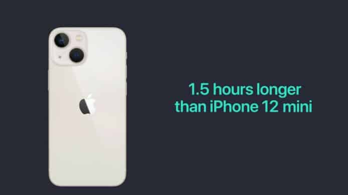 iPhone 13 將加入更大的電池。廠商指 iPhone 13 mini 的電量比上一代 iPhone 12 mini 的續航力提升多 1.5 小時,而 iPhone 13 則比上一代 iPhone 12 的續航力提升2.5小時使用時間。