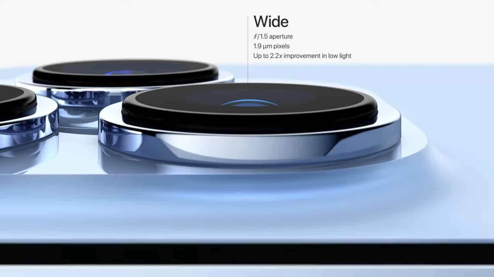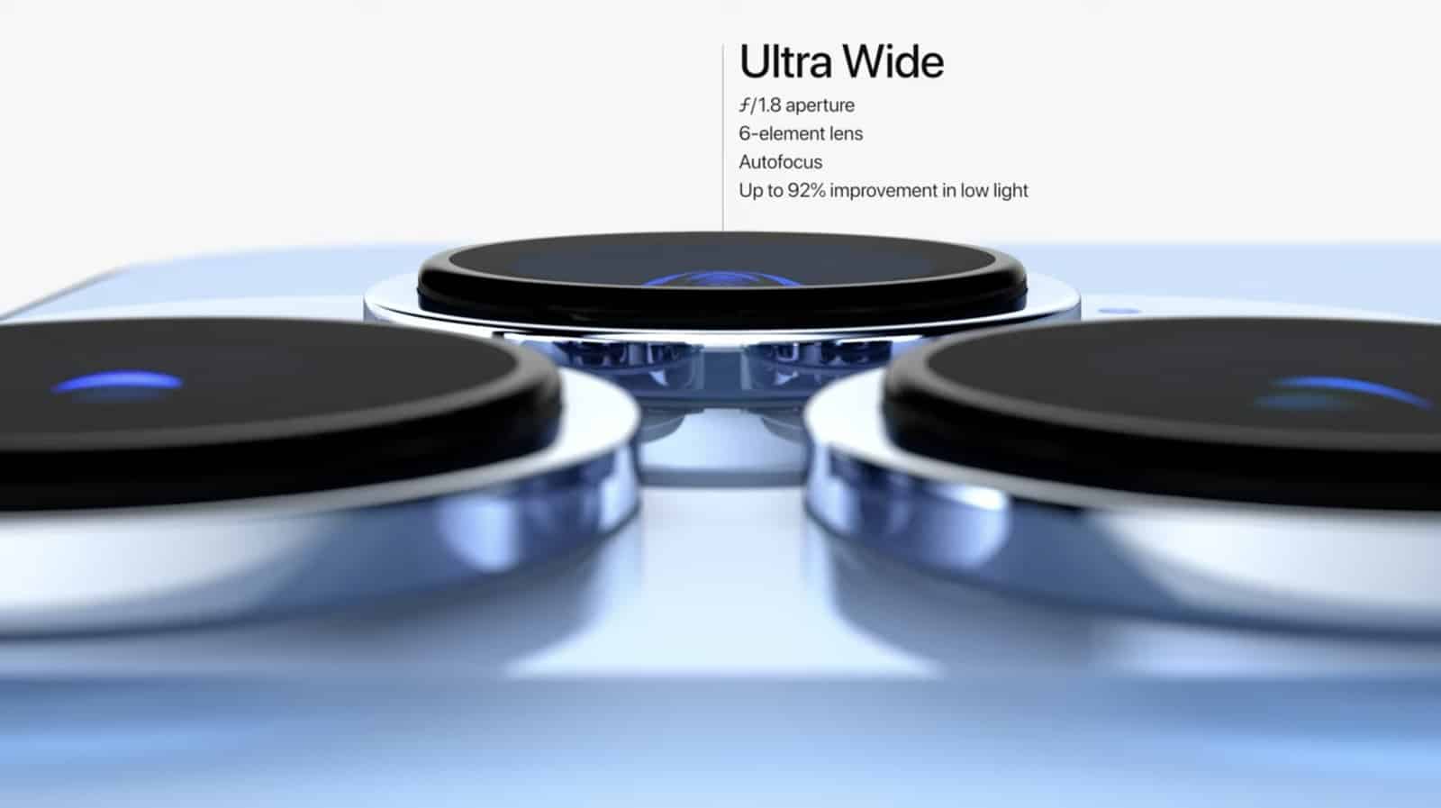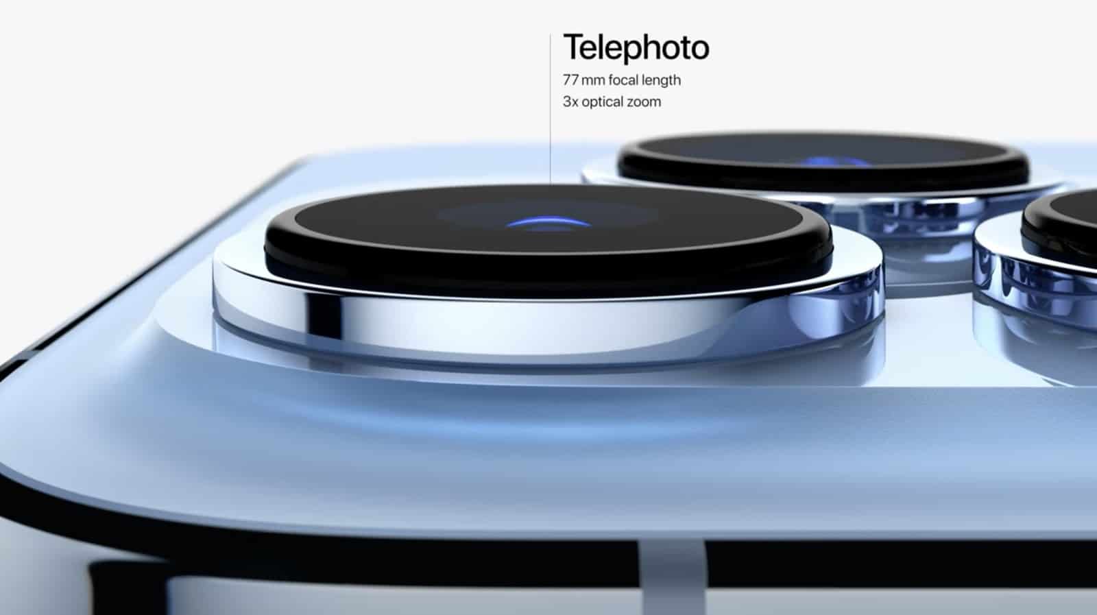 全新 iPhone 13 Pro 系列將加入 77mm 的長焦距相機,提供高達 3 倍的光學變焦放大,也能在拍攝人像攝影時,帶來更柔和的散景效果。新鏡頭也令 iPhone 13 Pro 的光學變焦範圍提升至 6 倍。全新超廣角鏡頭採用 f/1.8 光圈,提升了 92% 低光攝影時所需的進光量。全新廣角鏡頭更採用了至今面積最大的 1.9 微米像素感光元件,其低光拍攝時的進光量更達上一代的 2.2 倍。有助於在低光環境時加快快門速度,更可減低相片的雜訊。感光元件支援移動式光學影像防震功能 (sensor shift),讓相片及影片於低光環境顯現更多的低光細節、更少的雜訊,提供更長的包圍曝光時間。