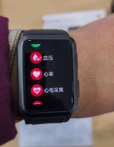 手錶採用方形錶盤設計,屏幕微曲,表體右側配有兩個實體按鍵,分別為 Health 和 Home 。在血壓檢測時,手錶能夠測量佩戴者的高壓、低壓、脈搏。有知情人士透露,手錶內部設置加壓囊袋,真實模擬血壓測量時的過程,使得出數據準確。另外,手錶亦加入了 ECG 心電圖測量功能,可同時測量心率及心電圖。