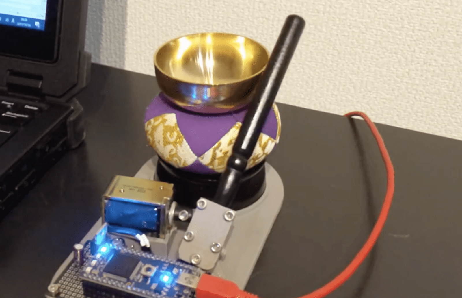 在日本推特(Twitter)上,一名網友分享了一段影片,當中展示了一件自製的敲缽,在電腦「死機」時幫助檔案超渡。