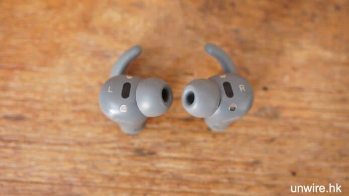 Beats Fit Pro 耳機最特別是這個小小耳翼。單看這塊小耳翼與按鈕是同一塊膠片,但按鈕部份很實淨,而耳翼部份就有柔軟同具彈性的感覺,令耳機既有一體感設計之餘,實際也各具功能。這個小耳翼的用處,是輕輕貼住人體耳廓凸出來的位置,耳朵剛剛好能包住這個耳翼,令耳機不會輕易跌出來。實際測試耳機的貼合度相當好,跑步、走路都不會有耳機要跌出來的感覺,同時由於耳翼體積細、耳機重量輕,不會有任何特別壓迫感、重量感,能夠與你的耳機連成一體。而且在外觀上,這對耳翼可隱藏到你的外耳廓裡面,不會有很大的一塊凸出來,看上去都非常 smart。