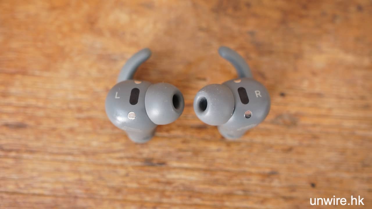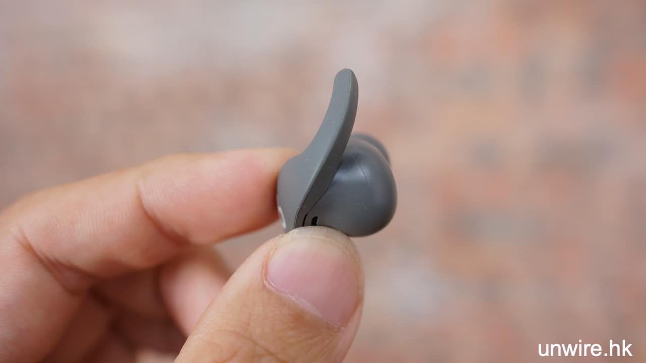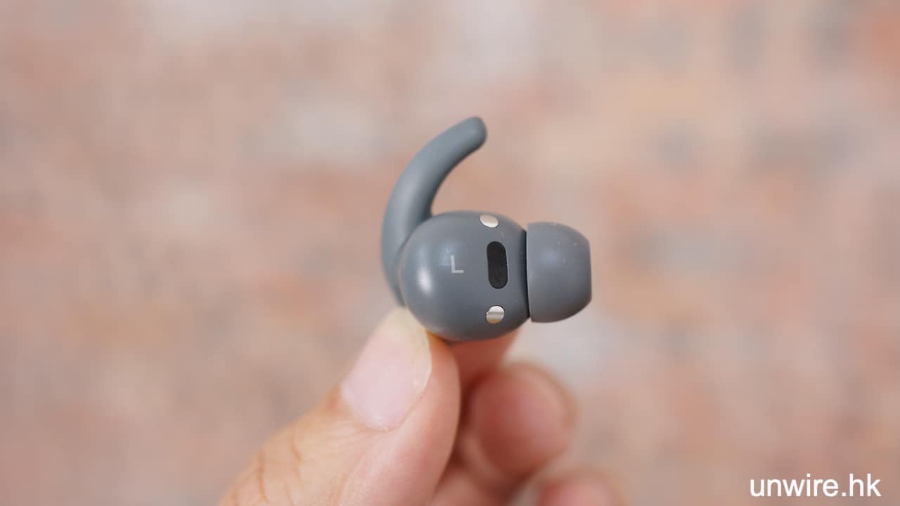 Beats Fit Pro 耳機最特別是這個小小耳翼。單看這塊小耳翼與按鈕是同一塊膠片,但按鈕部份很實淨,而耳翼部份就有柔軟同具彈性的感覺,令耳機既有一體感設計之餘,實際也各具功能。這個小耳翼的用處,是輕輕貼住人體耳廓凸出來的位置,耳朵剛剛好能包住這個耳翼,令耳機不會輕易跌出來。實際測試耳機的貼合度相當好,跑步、走路都不會有耳機要跌出來的感覺,同時由於耳翼體積細、耳機重量輕,不會有任何特別壓迫感、重量感,能夠與你的耳機連成一體。而且在外觀上,這對耳翼可隱藏到你的外耳廓裡面,不會有很大的一塊凸出來,看上去都非常 smart。