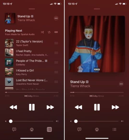 Beats 耳機都加入了空間音訊的支援,在 iOS 的耳機音量選單裡面便可開啟。開啟後系統會建立一個音場空間,耳機內的偵測器偵測到用家的頭部活動,更會動態追隨「聲源位置」。假設演奏者在你的面前演奏,而你的頭顱向左轉的話,聲音便會加強偏向右方耳機傳來的感覺,讓你有種身處於演奏空間的感覺。無論是音樂或者清淡節目,都會加強了臨場感覺。用戶亦可關閉「追蹤頭部」功能,只擴闊聲音驅場感。