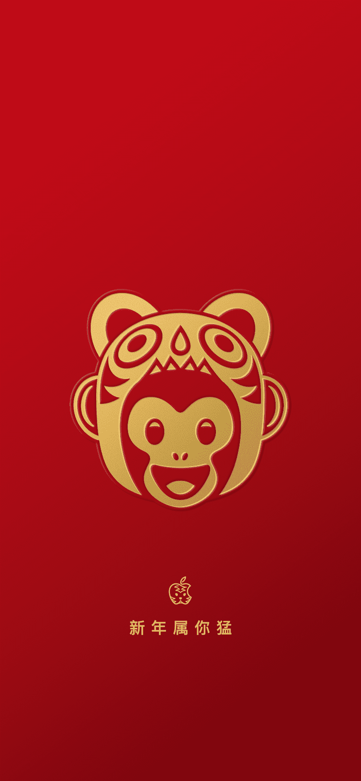 Apple 中國微信公眾號近日發表 12 生肖手機桌面圖案,該系列共有 12 張,每個生肖為一張主題。圖片以紅色作主色,加入金色的生肖圖案,金碧輝煌。另更在末端加入金色的限定版 Apple 虎頭標誌,並寫上「新年屬你最猛」的賀年標語。留意圖片由 Apple 中國發出,將顯示出中文簡體字。(原本的領取方法是在該微信公眾號內輸入「新年福利」自動取得)