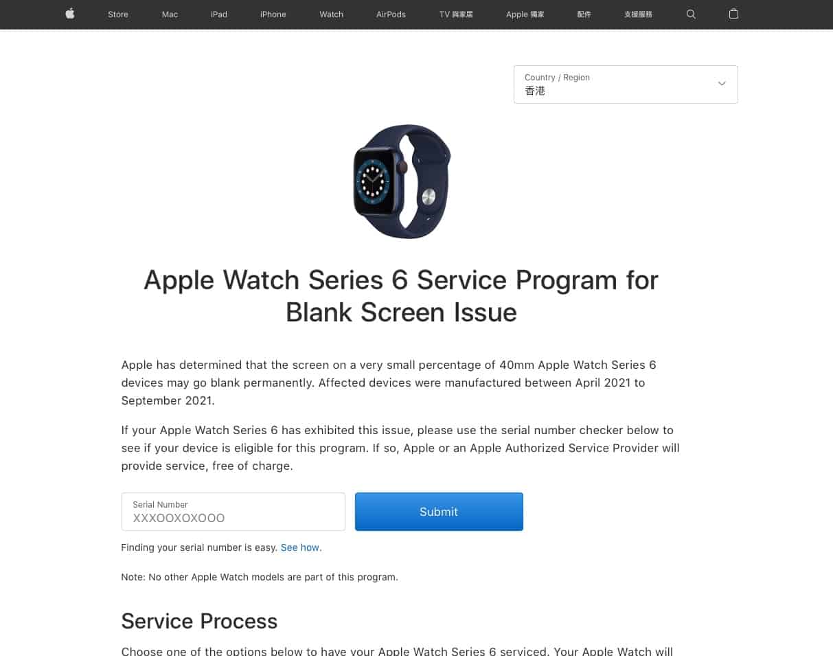 Apple 官方已確認在少部份 Apple Watch Series 6 的 40mm 型號,有可能會出現熒幕全黑的現象。