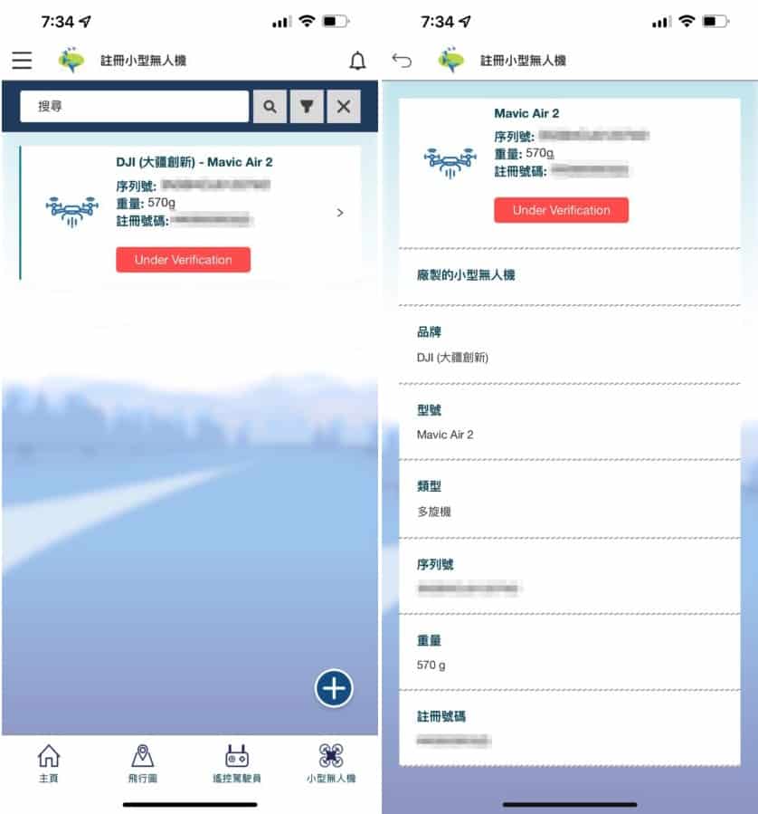 ▲當系統確認你的申請後,小型無人機的註冊狀態會變成「有效」,此時你便可正式在使用無人機。