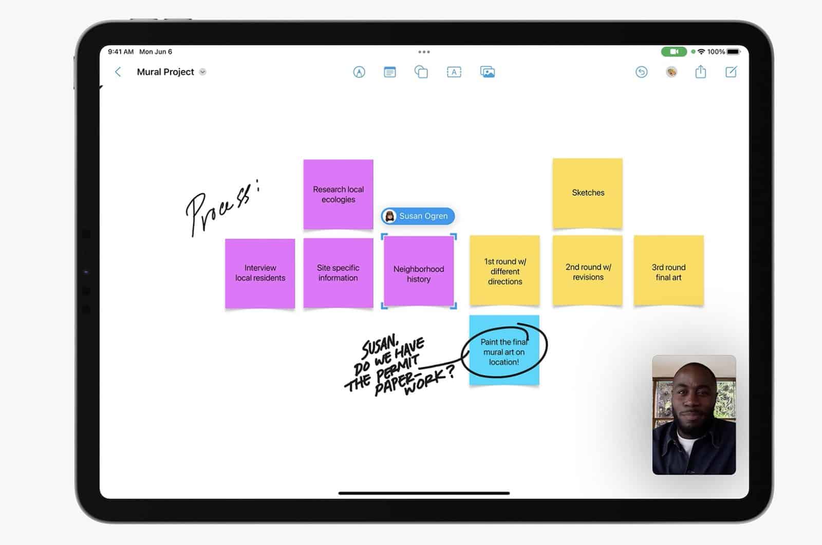 Apple將會加入「Freefrom」應用程式,它是一個電子白板系統,可讓多名用戶共同參與、協作。在白板裡面各人可透過 Apple Pencil 互相書寫自己的意見與內容,成為一個實時協作空間。「Freefrom」應用程式將會於今年稍後時間登陸 iPadOS。此 App可連結 FaceTime一齊使用。