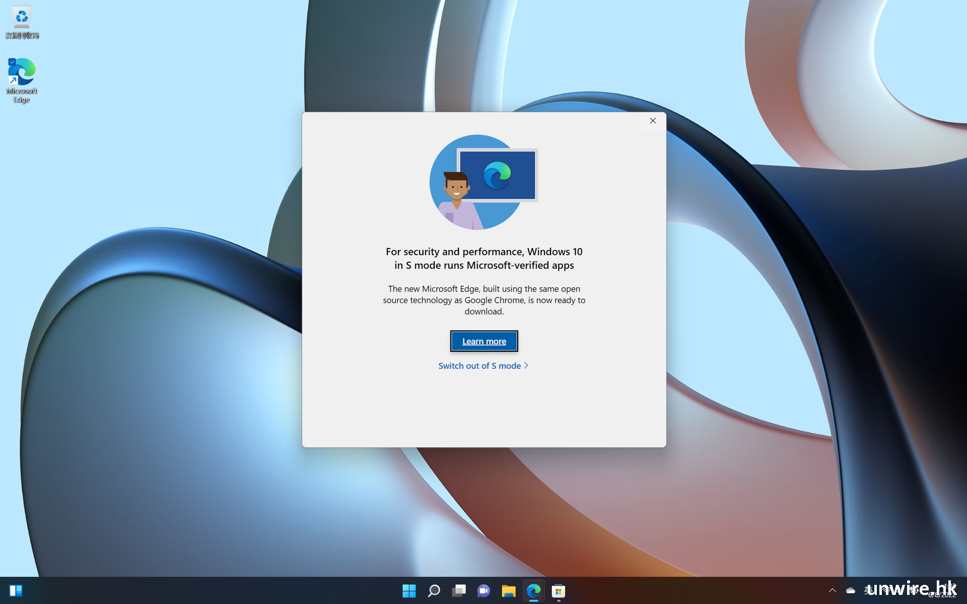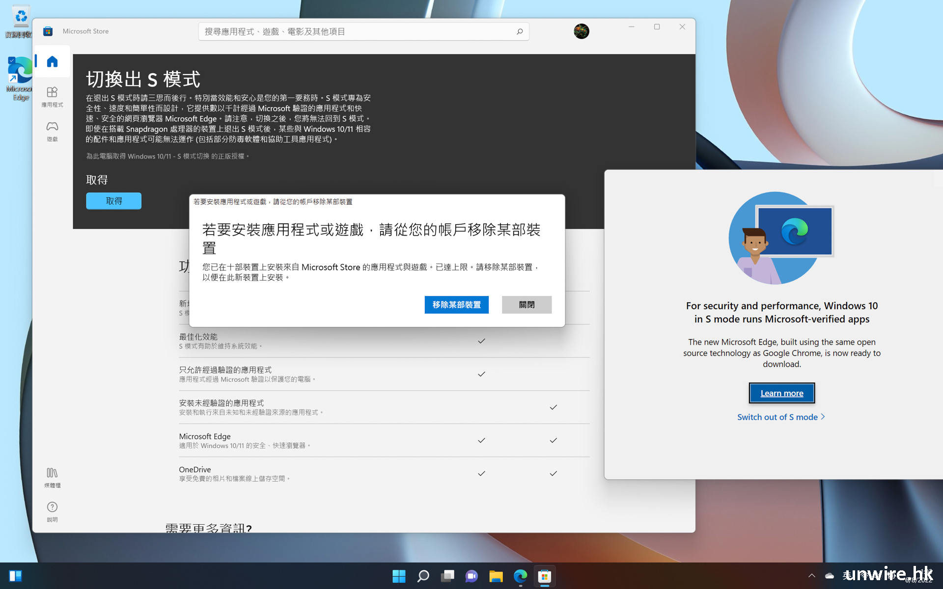 ▲當用家嘗試安裝 Microsoft Store 以外的軟件時,系統就會詢問用家是否退出 S 模式,如果是,點選「Swith out of S mode」就可以了。