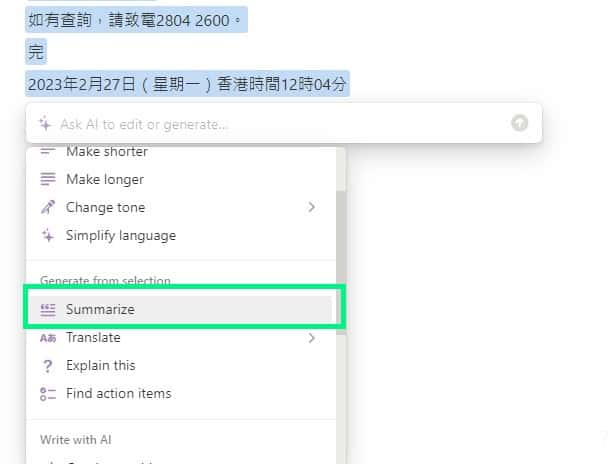▲原文近 700 字,經過 Notion AI 撮要後,只剩下不足 200 字,節省了不少閱讀時間。