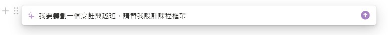 例如小編打算籌劃一個烹飪興趣班,此時小編輸入了以下指令,請 Notion AI 替我籌劃活動框架