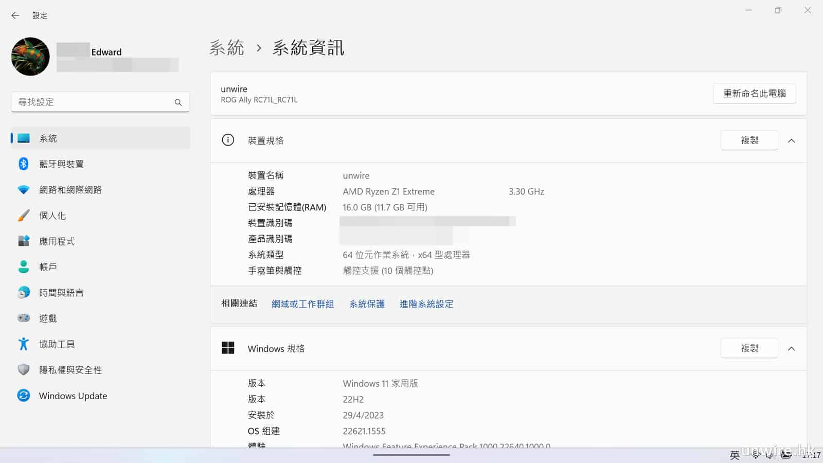 ▲ROG Ally 預載了 Windows 11 家用版作業系統。