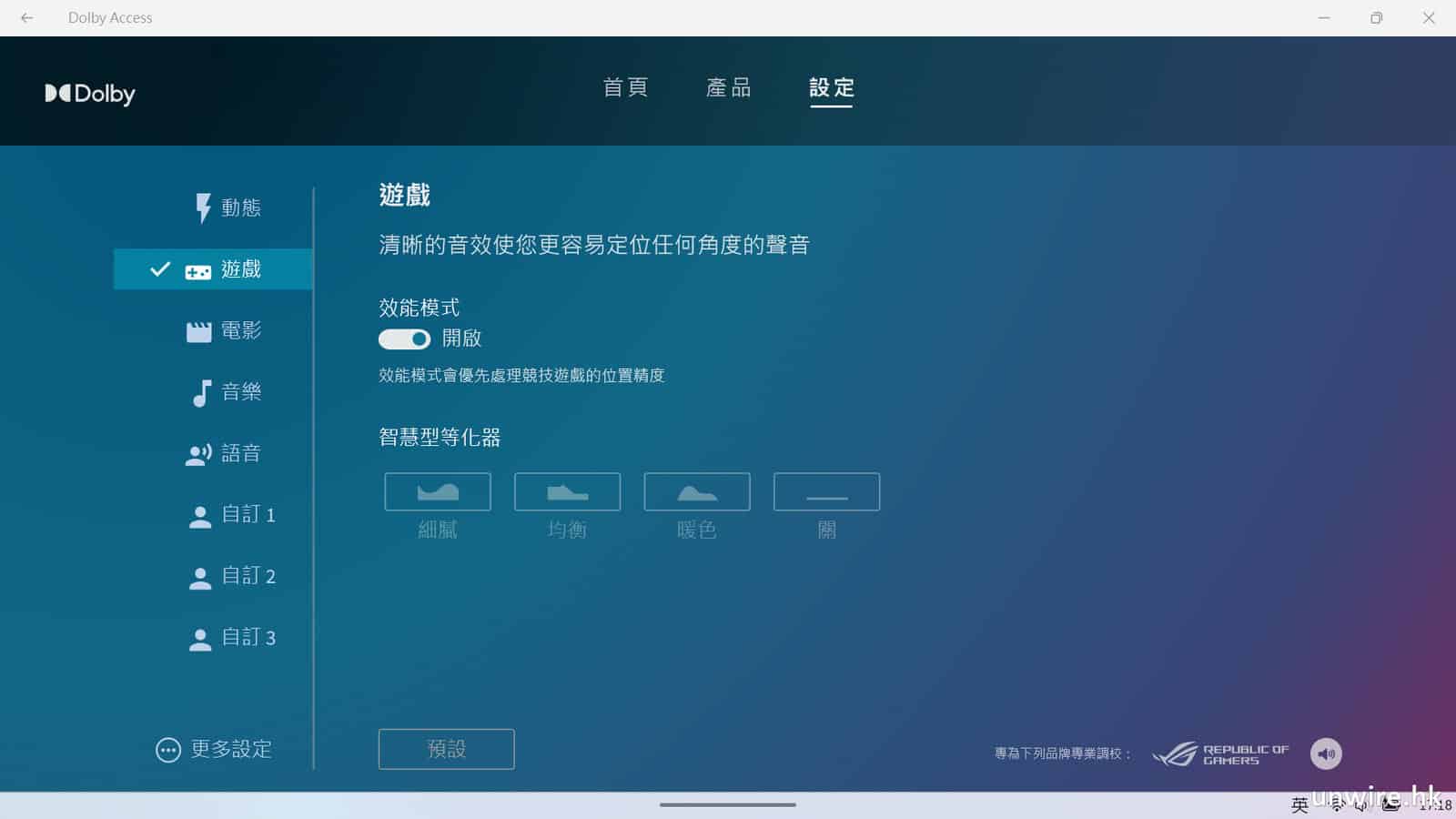 ▲另外,在 Armoury Crate SE 中,用家也可以像其他 ROG 電競機一樣,在 GameVisual 設定中選用不同模式以迎合玩不同遊戲的效果。