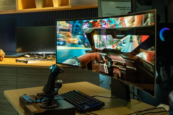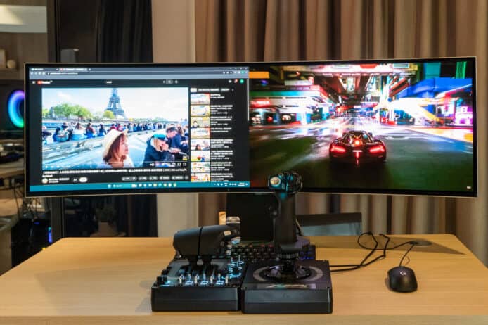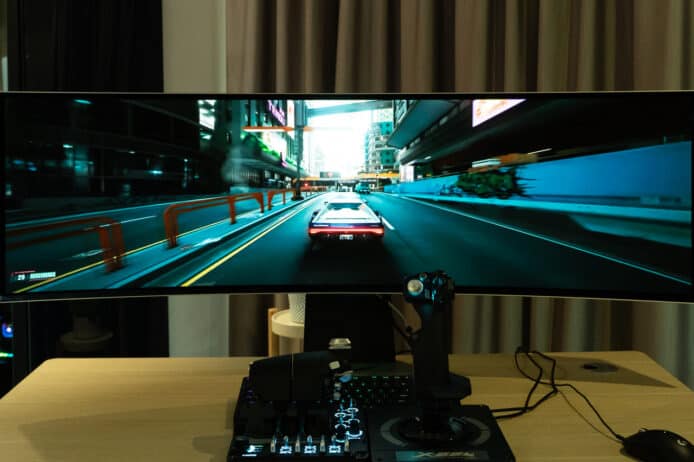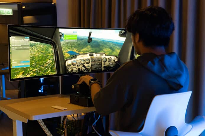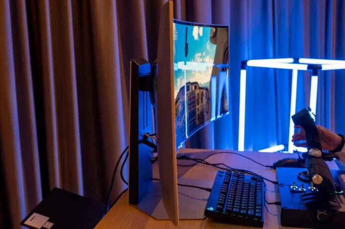 今日 Samsung 以《Flight Simulator》模擬飛行遊戲示範曲面電競螢幕。小編實測過,以 Samsung Odyssey OLED G9 49 吋超闊曲面電競螢幕遊玩《Flight Simulator》模擬飛行遊戲的話,真的很有臨場感,曲面螢幕包圍住小編,提供有如置身駕駛艙親身駕駛飛機般的感受。以往需要以多個螢幕才能夠獲得這個體驗,而且螢幕間有一道道黑邊大煞風景,現在一個 Odyssey OLED G9 就能夠解決問題。