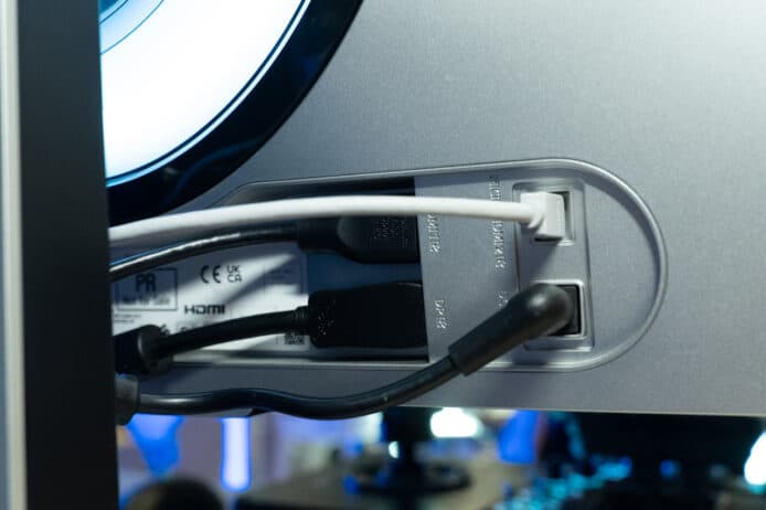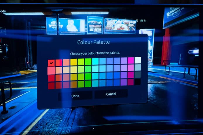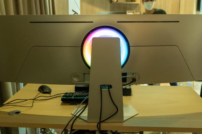 Samsung Odyssey OLED G9 機身和支架都採用纖巧仿金屬材質框,機背搭配 Core Lighting +,提供多種顏色模式,讓螢幕更添獨特個性,創造充滿未來感的氛圍。 G9 亦支援 CoreSync 光效自動調整設計,可依據用戶喜好,配合遊戲場景自動變化光效。