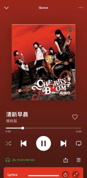 小編先以 Spotify 播放櫻桃幫《清新早晨》,歌曲由女聲主唱,加上有不少結他及鼓聲,節拍感強勁,複雜的編曲較考驗耳機能力。小編試聽後覺得 Tour One M2 低頻表現不俗,下潛力不錯,但女聲部分較為失望。幸而稍為調較 EQ 後,女聲聽起來會更清晰。