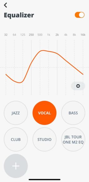 EQ 方面就預設 6 項,分別是 Jazz、Vocal、Bass、Club 、 Studio 及 JBL 專為 TOUR ONE M2 調教的 EQ。假如用家對 EQ 未有太多認識,相信足夠使用,用家亦可自行新增其他 EQ 模式。