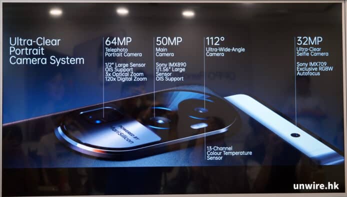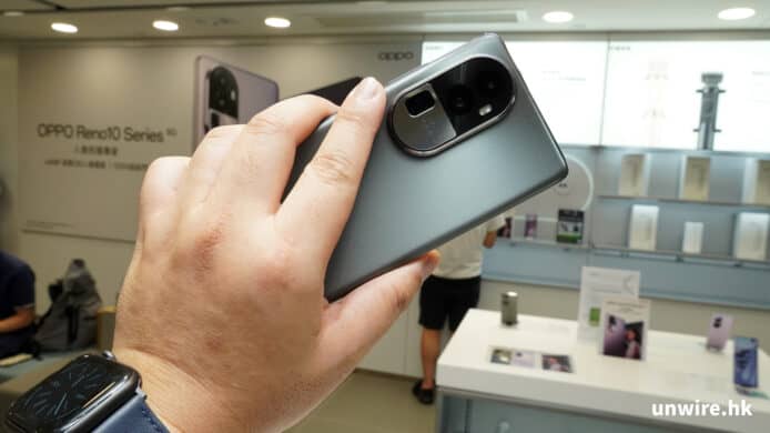 相機一直是 OPPO Reno 系列的主打功能,去到今代的 Reno 10 Pro 及 Reno 10 Pro+ 亦不例外,兩機均採用了 5,000 萬像素 f/1.8 光圈主攝鏡及 800 萬像素 f/2.2 光圈 112 度視野的超廣角鏡,當中主攝鏡就仍然採用 Sony IMX890 1/1.56 吋感光元件,低光拍攝效果應該仍然不俗。不過相比上代 Reno 9 系列,今代最大特點就是加入了終於加入遠攝鏡,Reno 10 Pro 內建了 3,200 萬像素超光影長焦鏡,可提供 2 倍光學變焦;而 Reno 10 Pro+ 就更內建了 6,400 萬像素超光影潛望式長焦鏡,採用了懸浮棱鏡防震系統,雖然光圈較 Reno 10 Pro 細(Reno 10 Pro:f/2;Reno 10 Pro+:f/2.5),但感光元件就更大(Reno 10 Pro:1/2.74 吋;Reno 10 Pro+:1/2 吋),所以使用上應該分別不大,而且更支援 3 倍光學變焦,對遠攝成像有十分大的幫助。至於效果方面,由於發佈會現場所限,只能測試到人像拍攝表現,不過效果已算不錯,至於更詳細的相機測試,稍後借得真機後會再與大家分享多一點。至於前鏡方面,Reno 10 Pro 及 Reno 10 Pro+ 就仍然保留採用上代的 3,200 萬像素 f/2.4 開孔式自拍鏡,效果亦算不錯,不過相比上代進步就不算明顯。
