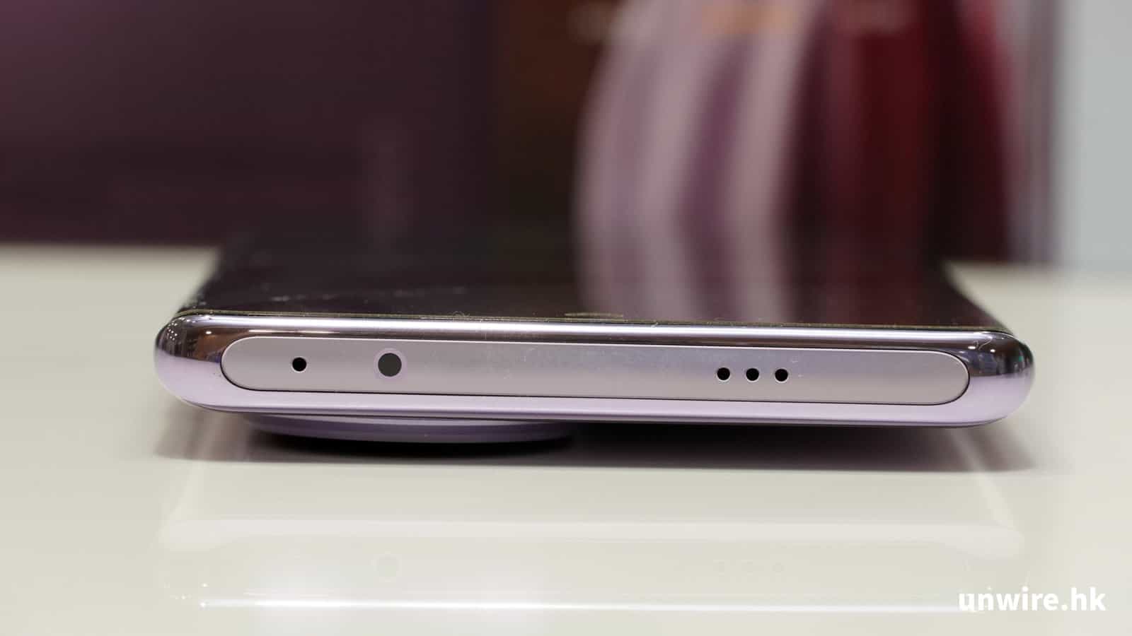 ▲機身邊位方面,3 邊均用上金屬拋光中框,而機頂就用上類似機背磨砂物料設計,設計漂亮。