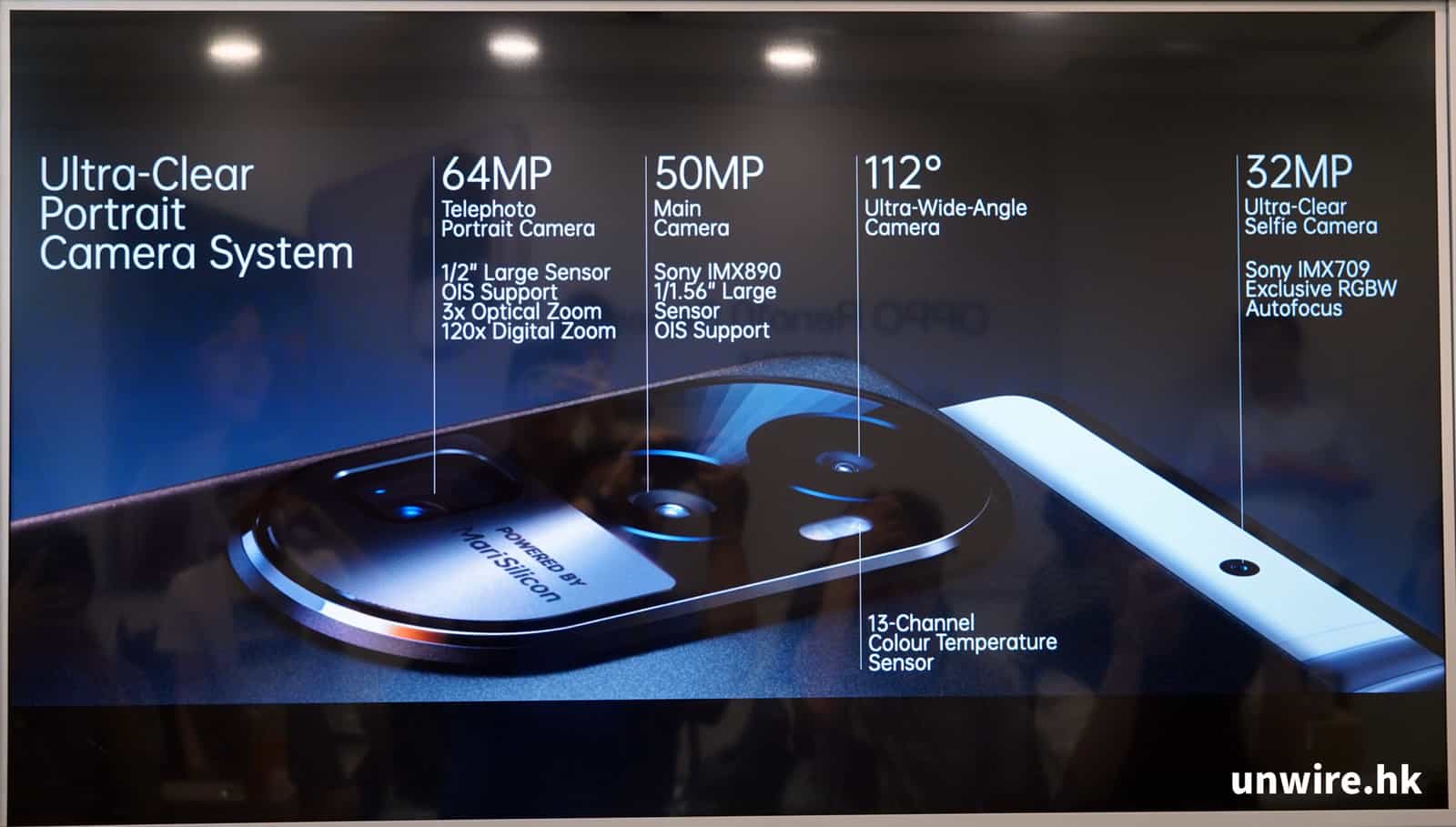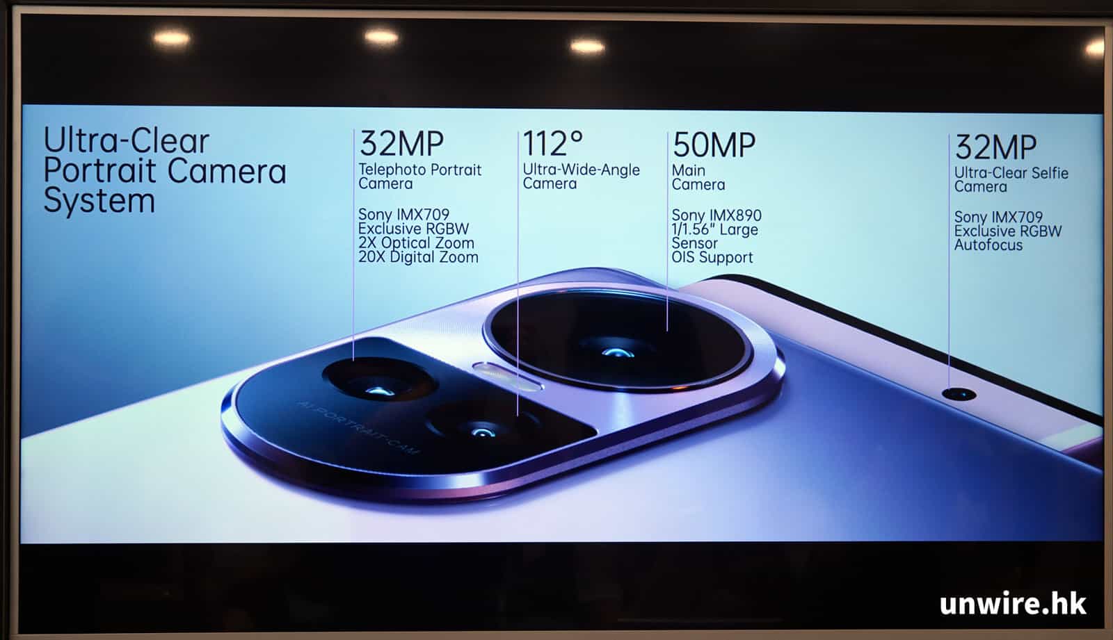 ▲大家可以見到的是,Reno 10 Pro(第二張)及 Reno 10 Pro+(第一張)均內建了採用 Sony IMX890 1/1.56 吋感光元件的 5,000 萬像素主攝鏡及擁有 112 度 FOV 的 800 萬像素超廣角鏡,主要分別在於遠攝鏡方面。另外,前鏡方面,兩者均仍然沿用 3,200 萬像素開孔式自拍鏡的配置。