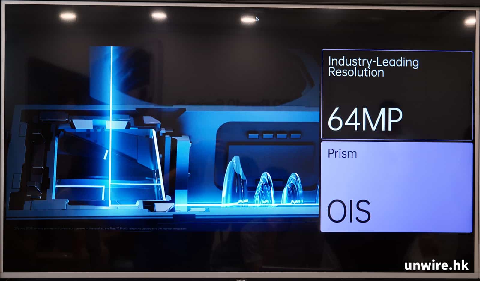 ▲而較高階的 Reno 10 Pro+ 就用上了最高支援拍攝 6,400 萬像素相片的遠攝鏡,鏡頭採用潛望式設計,並使用了懸浮棱鏡防震系統,擁有更大的 1/2 吋感光元件,並支援光學防手震功能,有助拍攝更高質更穩定的遠攝相片。