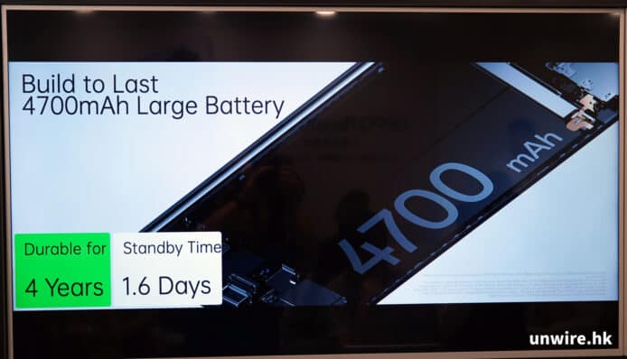 ▲今代 Reno 10 Pro+ 內建了 4,700mAh 容量電池,與上代相同,不過官方表示電池十分耐用,使用 4 年仍可提供 1.6 天的待機時間。