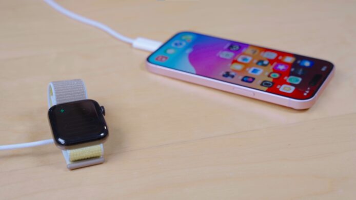 ▲如果你有帶充電座外出,iPhone 15 更可以為你的 Apple Watch 充電