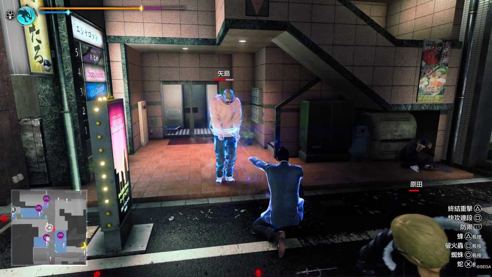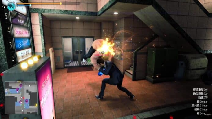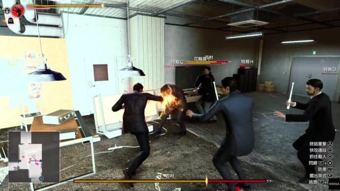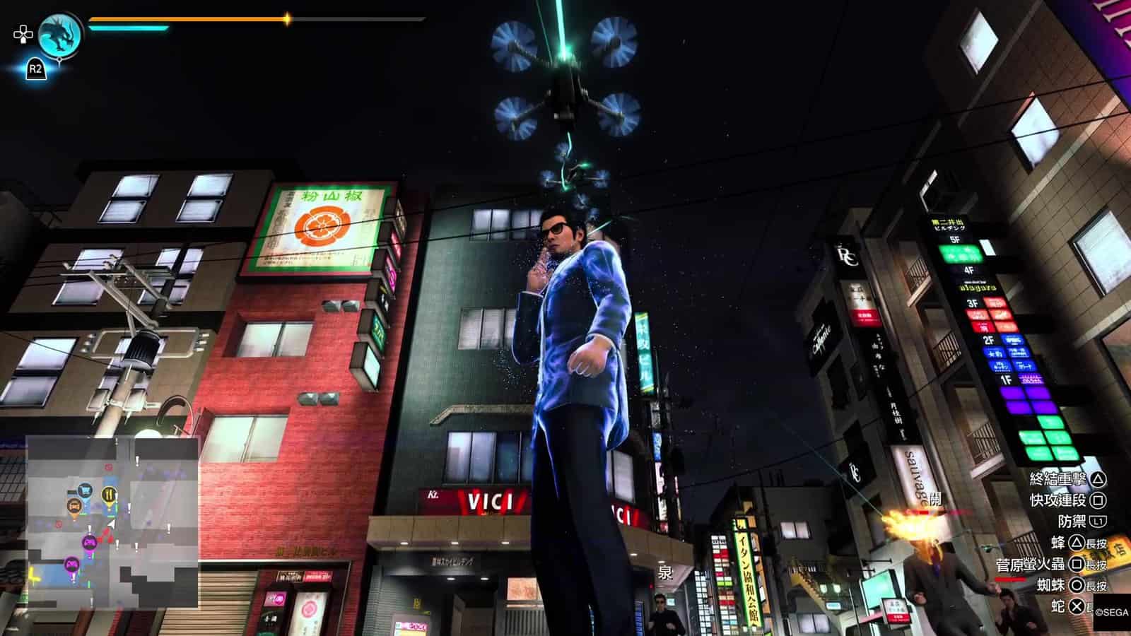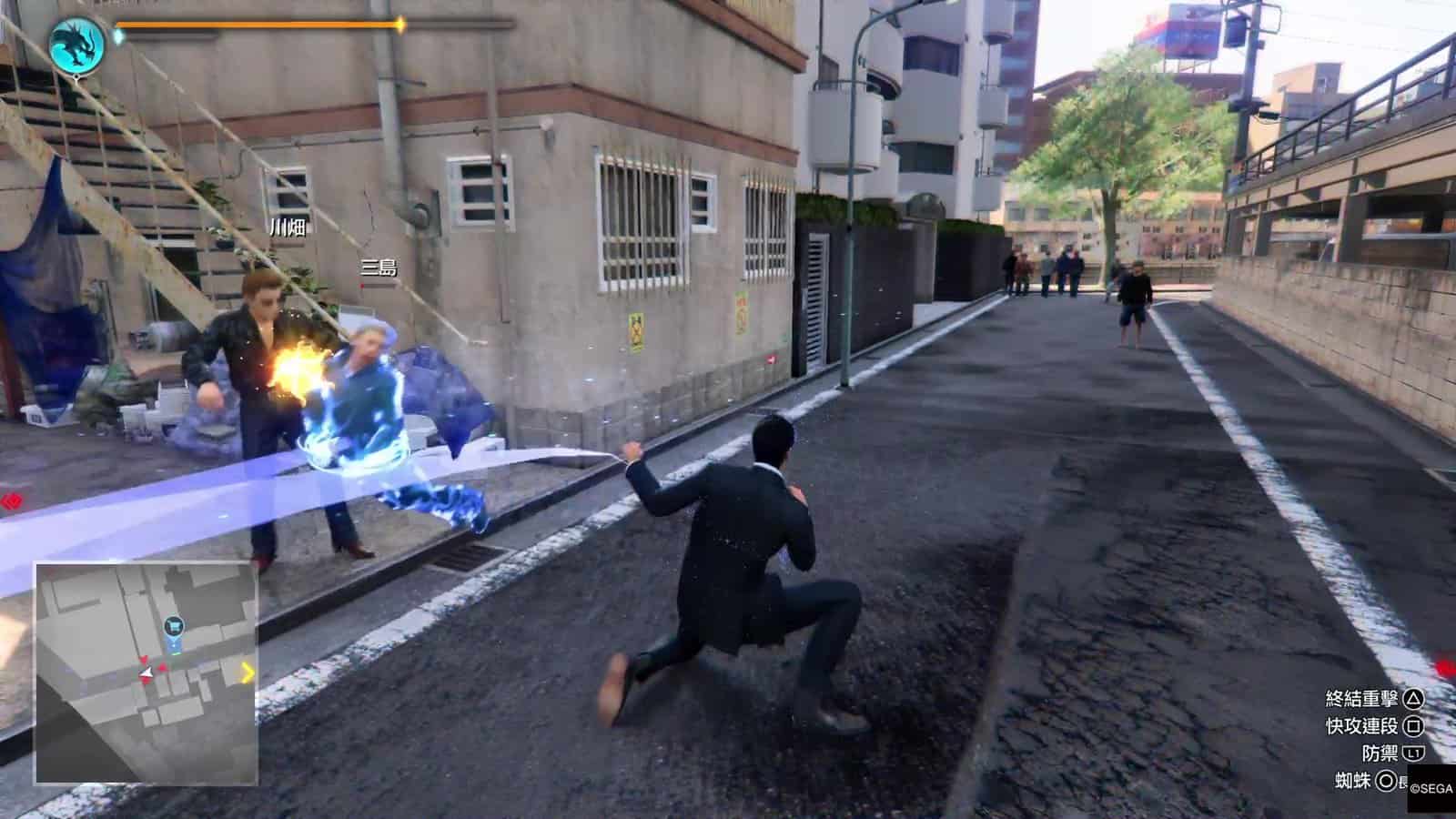小編認為上述介紹的「特務」戰鬥風格,在對付大量嘍囉的戰鬥上確是非常爽快。不過「特務」戰鬥風格在大頭目上都比較難使用。一來三個招式都需要長按 △、○ 或 □ 來使出,大多數頭目都會高速移動、積極埋身向桐生一馬攻擊,令到玩家大多數情況不會有悠閒的時間來發動「特務」的小道具。即使發動到這些小道具,例如蜘蛛絲,頭目都有很強抵禦能力,躲開蜘蛛絲或爆開蜘蛛絲纏擾;玩家也沒有時間悠閒地叫出無人機。所以接下來玩家在戰鬥時,依然需要用最原始的戰鬥方式,就是躲避敵人的攻擊然後反擊。