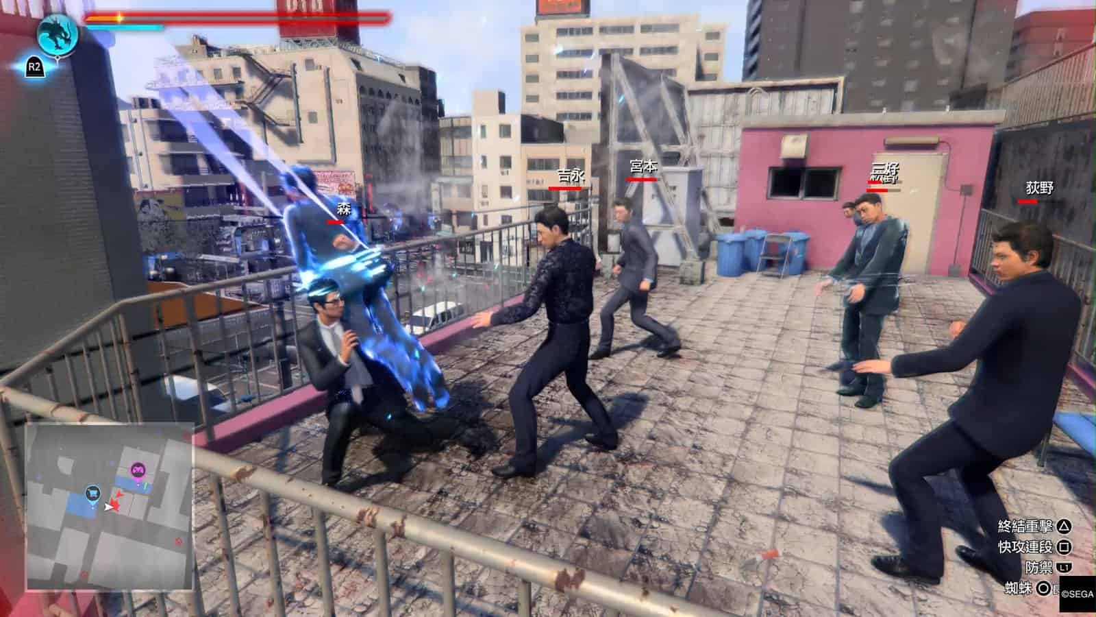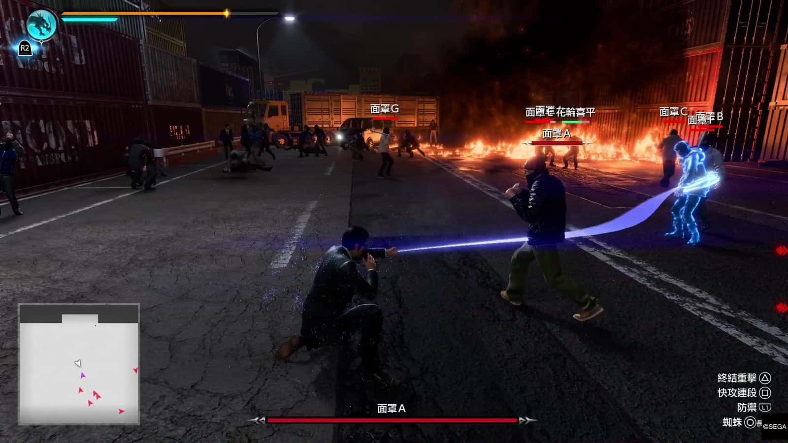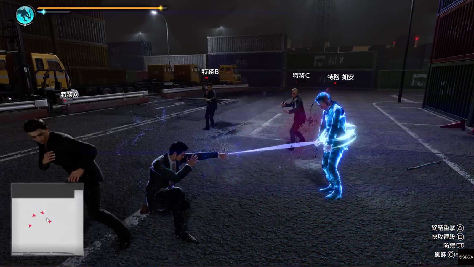 小編認為上述介紹的「特務」戰鬥風格,在對付大量嘍囉的戰鬥上確是非常爽快。不過「特務」戰鬥風格在大頭目上都比較難使用。一來三個招式都需要長按 △、○ 或 □ 來使出,大多數頭目都會高速移動、積極埋身向桐生一馬攻擊,令到玩家大多數情況不會有悠閒的時間來發動「特務」的小道具。即使發動到這些小道具,例如蜘蛛絲,頭目都有很強抵禦能力,躲開蜘蛛絲或爆開蜘蛛絲纏擾;玩家也沒有時間悠閒地叫出無人機。所以接下來玩家在戰鬥時,依然需要用最原始的戰鬥方式,就是躲避敵人的攻擊然後反擊。