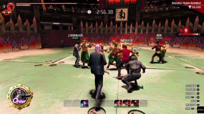 鬥技場今集採多人戰鬥,玩家在場外招攬成員,在戰鬥擂台上對抗不同敵人。在初期你可能只能招攬一般戰士,但隨著發展,你可招攬《人中之龍》系列舊作的角色們入隊,有人例如《人龍 7》的雞男、羊男、《人龍 4》曾田地、《審判》系列的杉浦文也等。購買 DLC 或預約特典可得到真島吾朗、堂島大吾、冴島大河等角色。玩家更可配置桐生一馬以外的角色做隊長,直接控制這些角色。