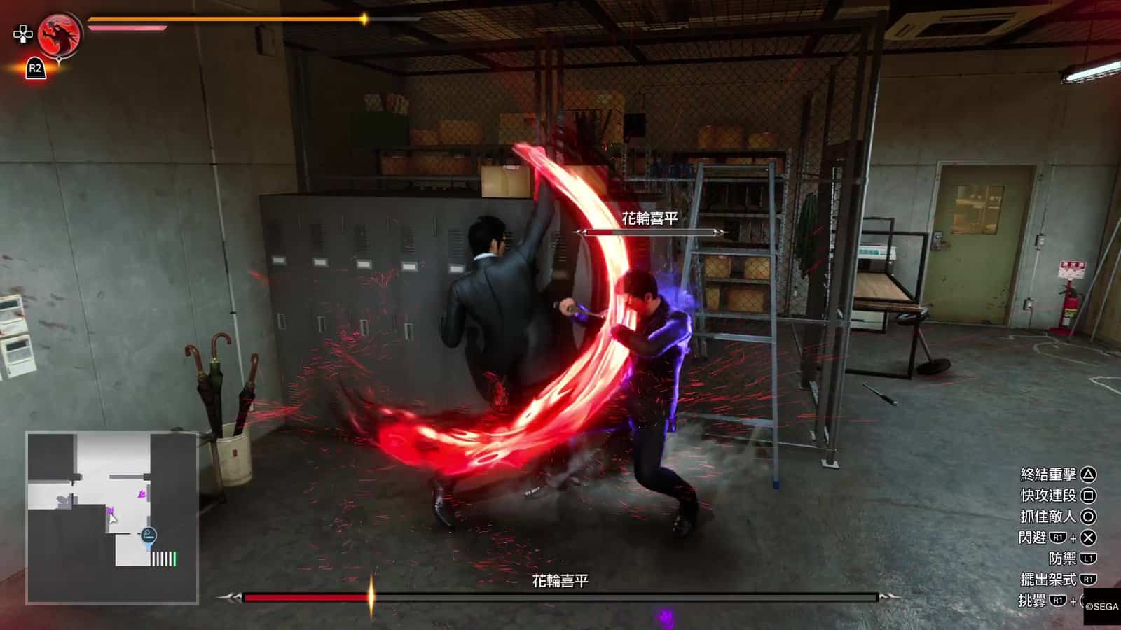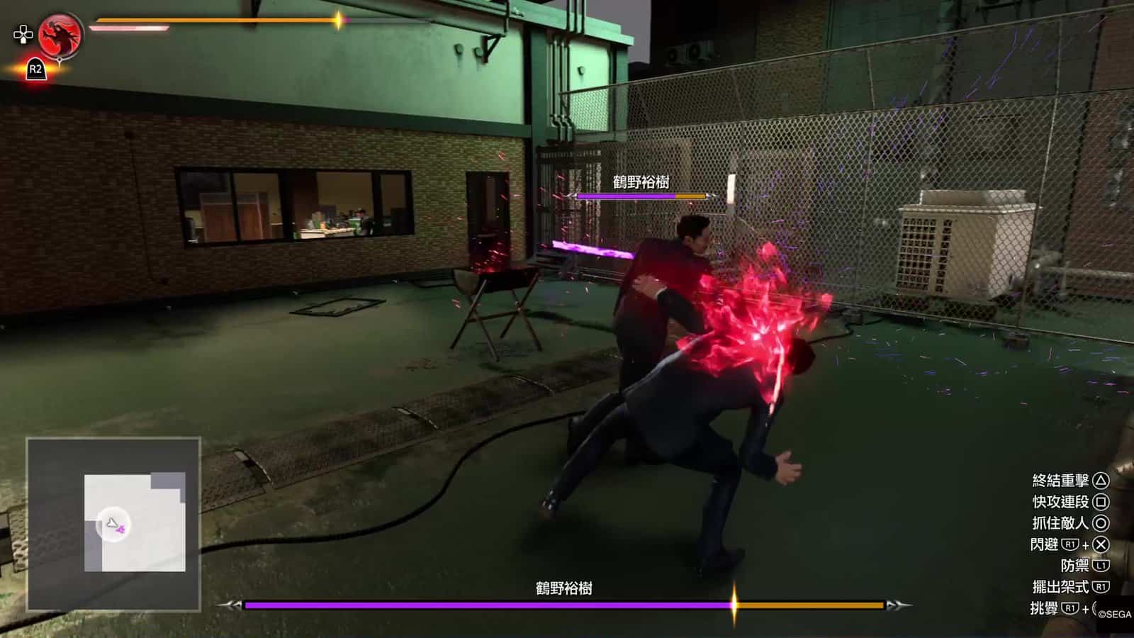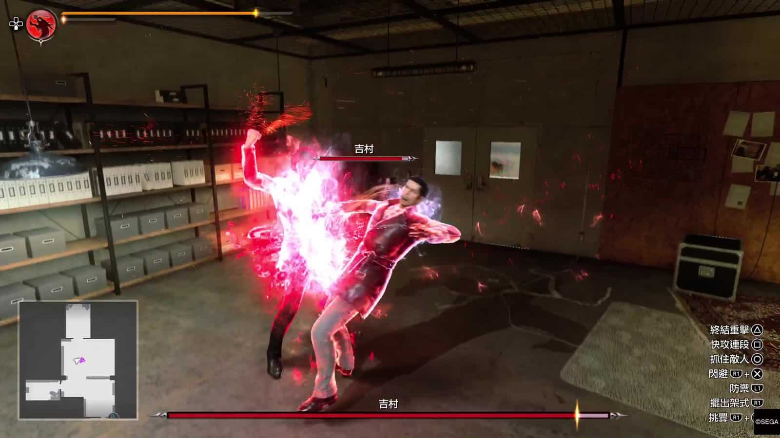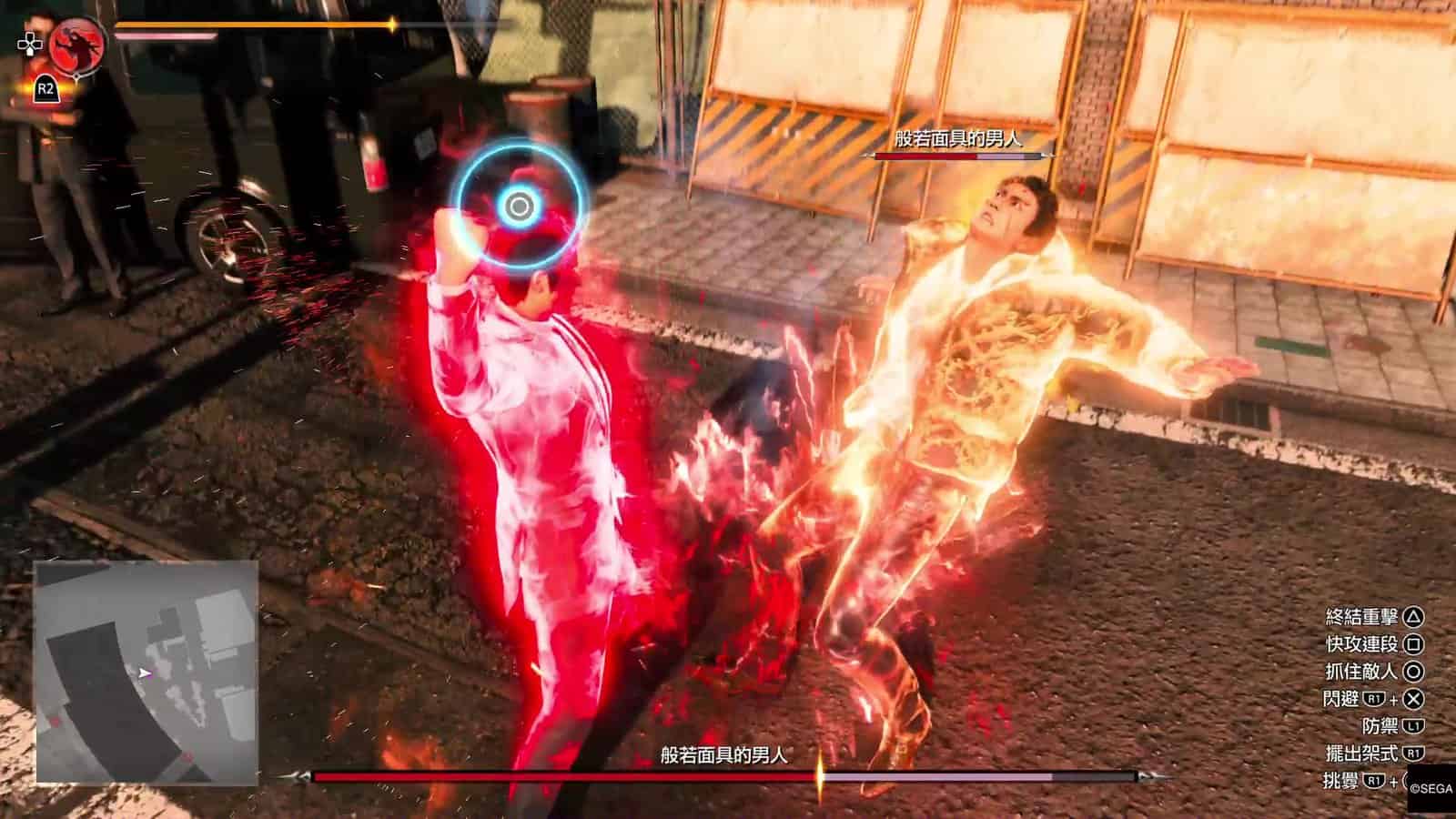 今集《人龍》的戰鬥加強了反擊技的重要性。除了在強化能力中有不少反擊技之外,更加入了頭目必殺技的反擊技「究極反擊」,就是在頭目準備出必殺技時,按 R1 + ✕ 閃避,此時畫面會稍為靜止,你可隨時再按 ○ 反擊,這一下十分痛快。過往頭目必殺技會對玩家造成「致命傷」,玩家為免中招必須不斷躲避直至頭目結束必殺技形態,而「究極反擊」在化解必殺技之餘,更可對頭目造成損害,終於不用躲避而且還能反擊,這方面也加強了戰鬥的爽快感。但調轉來說,今集雖沒有「致命傷」系統,但敵人的必殺技威力十分強,通常扣半條血或以上。整體來說小編認為開發者加強了敵人必殺技在戰鬥中的重要性,戰鬥中增加了不少緊張感。
